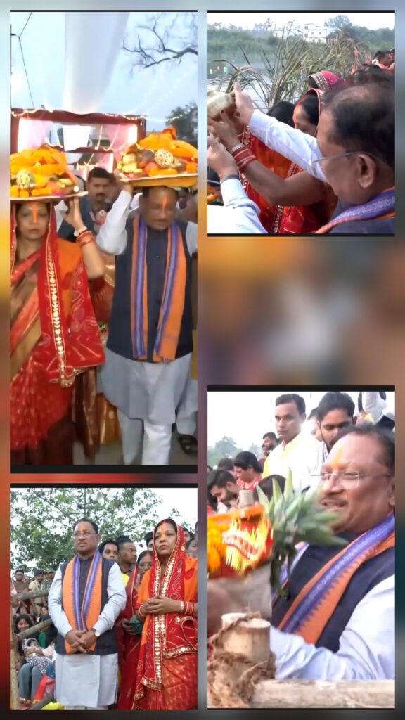 मुख्यमंत्री विष्णुदेव साय ने कुनकुरी में छठ घाट पहुंचकर अर्घ्य दिया, बोले – पिछले 20 वर्षों से निभा रहा हूं यह परंपरा